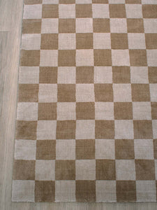 Introducing the Calcada Rug in Hazelnut! This handwoven rug features a timeless check pattern and is made from Dapsylc yarn, known for its softness and durability. Sustainable and perfect for both Residential and Commercial interiors. Upgrade your space with style and eco-friendliness!