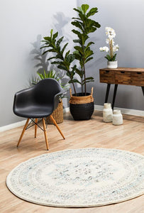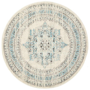 Lace 922 Round Rug | White & Blue