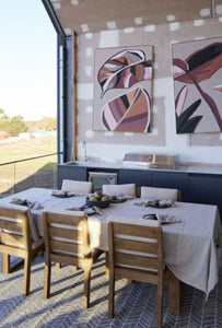 Herringbone Seaspray is ideal outdoor rug for under dining tables or in those under cover outdoor areas. It has a spayed on latex rubber backing for safety and is constructed from Nylon thread in a flat woven method.