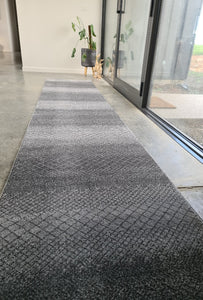 Being a classic tribal design, this hall runner works well with most styles. Its design is emphasised by the Ombre alternating tones of light and mid greys.