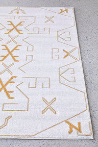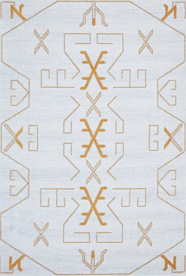 A design compiled of symmetry pattern and geometric shapes renders the PARADISE CALA GOLD as a pillar of modern fabrication. This Turkish power loomed rug offers an overall cream colour with essential gold angles. Centre room placement is indispensable for a living space as it surely to capture the focus of those who are caught in the gravity of this rug.