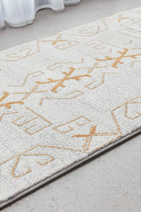 A design compiled of symmetry pattern and geometric shapes renders the PARADISE CALA GOLD as a pillar of modern fabrication. This Turkish power loomed rug offers an overall cream colour with essential gold angles. Centre room placement is indispensable for a living space as it surely to capture the focus of those who are caught in the gravity of this rug.