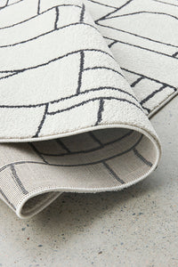 Rich with a modern design fixture the PARADISE FLEUR is a must have rug for any living room setting. Power loomed in Turkey, this rug features an off-white background underneath a black geometric pattern and a 10 mm pile, soft texture finish to make it a diverse addition to any living space. The design features a range of geometrical shapes, however the accompanying curved lines create a balanced pattern.